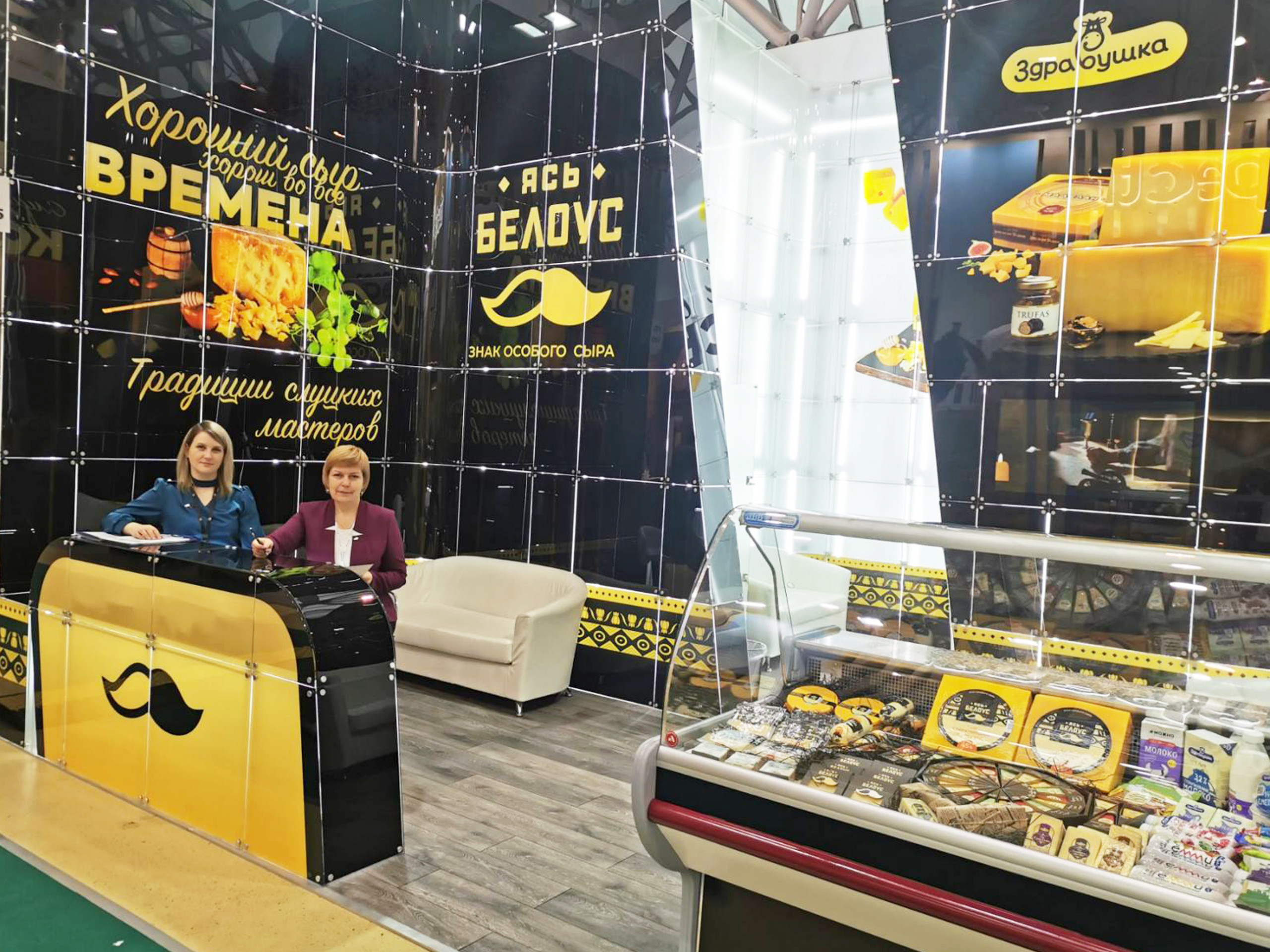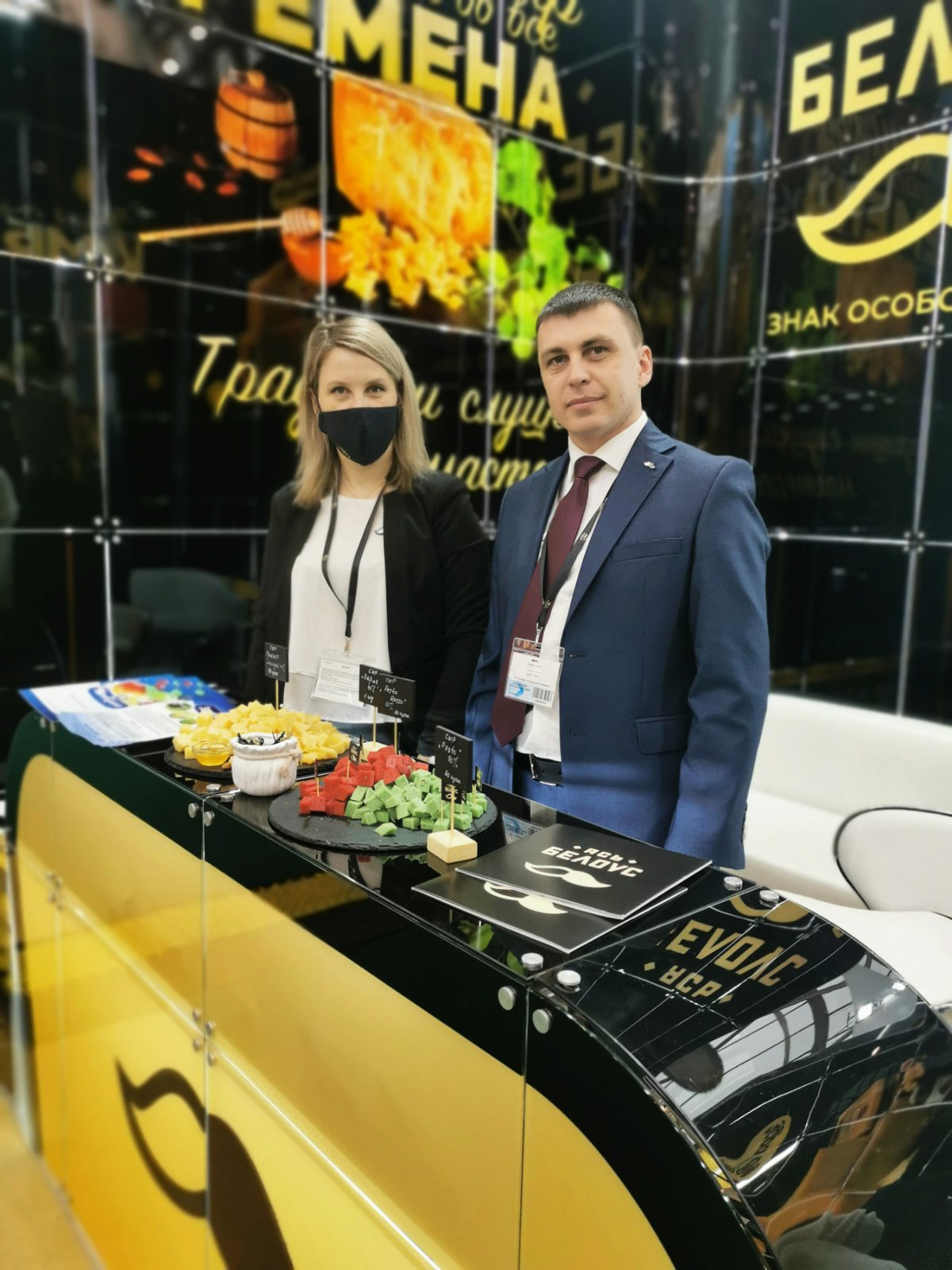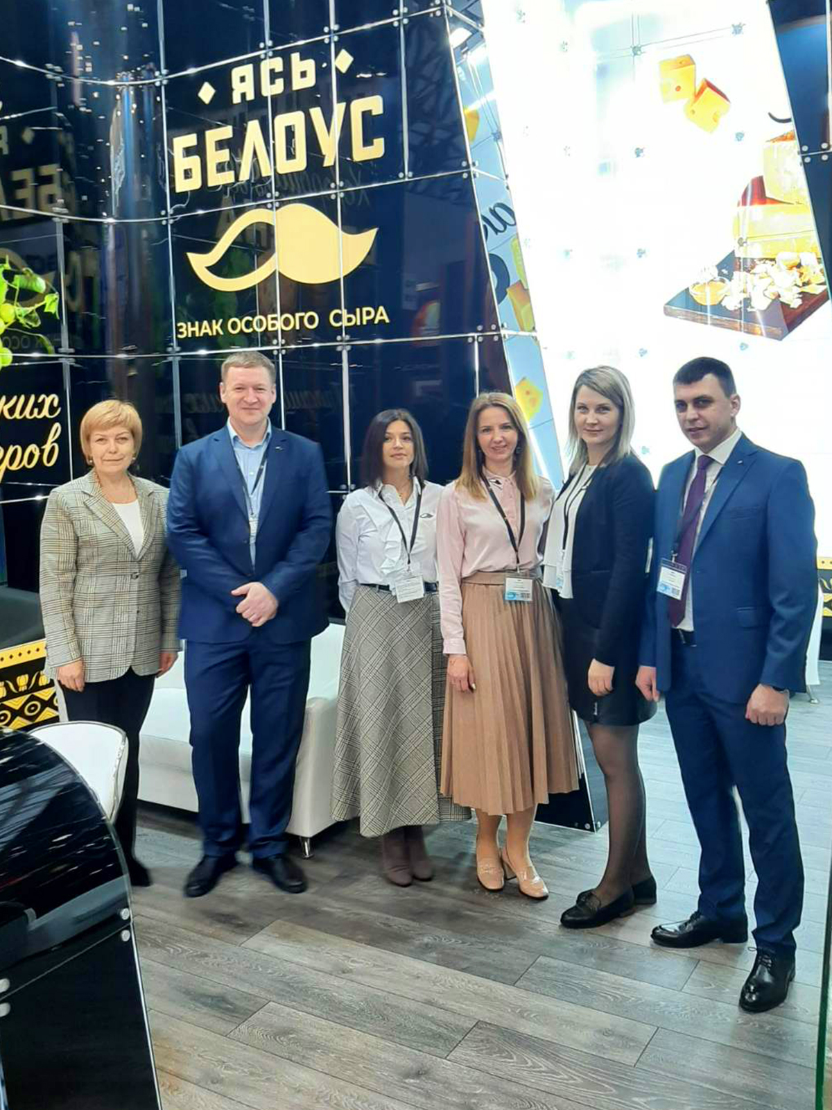 Слуцкий сыродельный комбинат представлял на выставке сыры твердые и полутвердые в ассортименте, масло сливочное, сухие молочные продукты, цельномолочную продукцию в ассортименте, глазированные сырки и т. д.