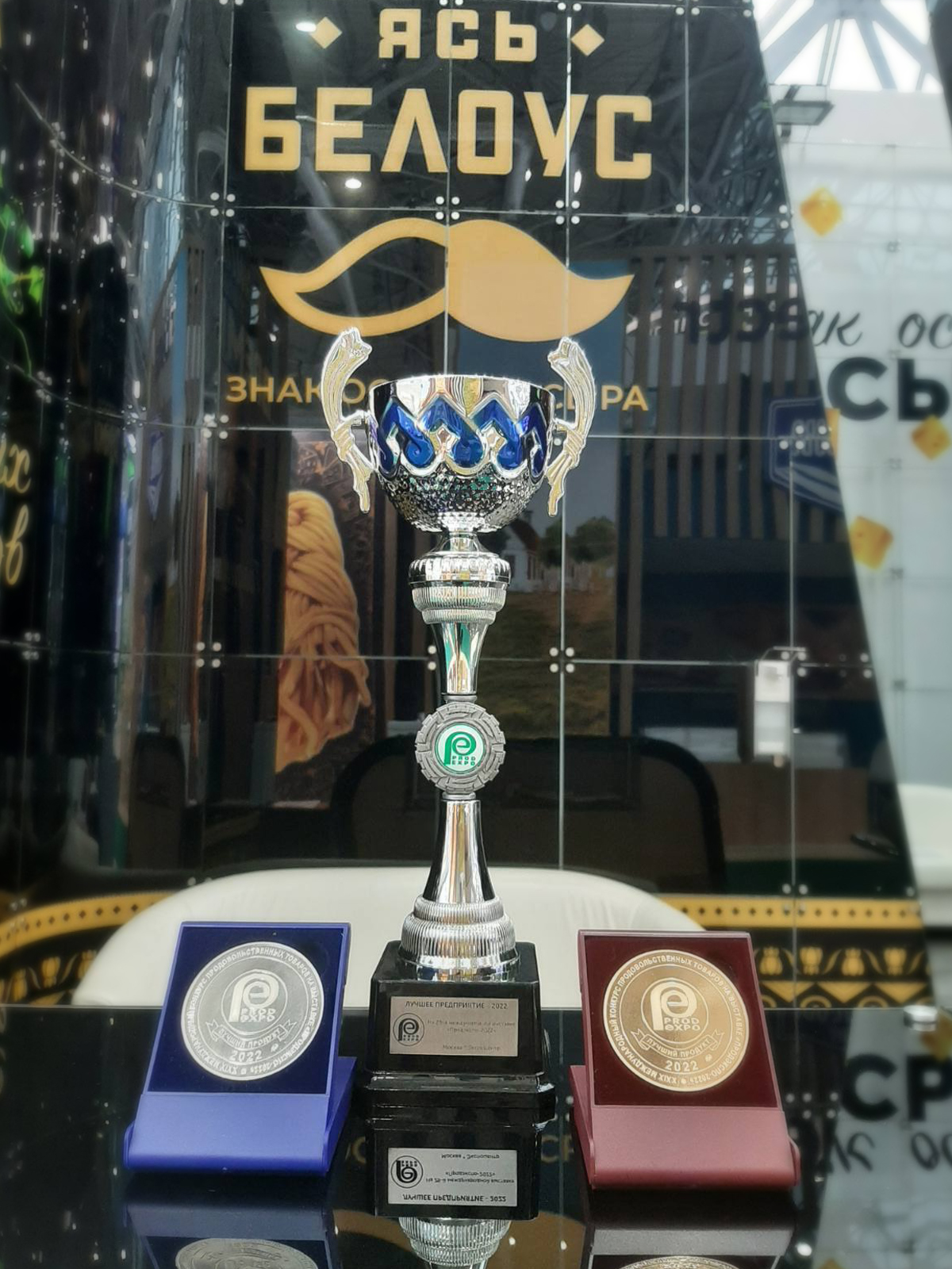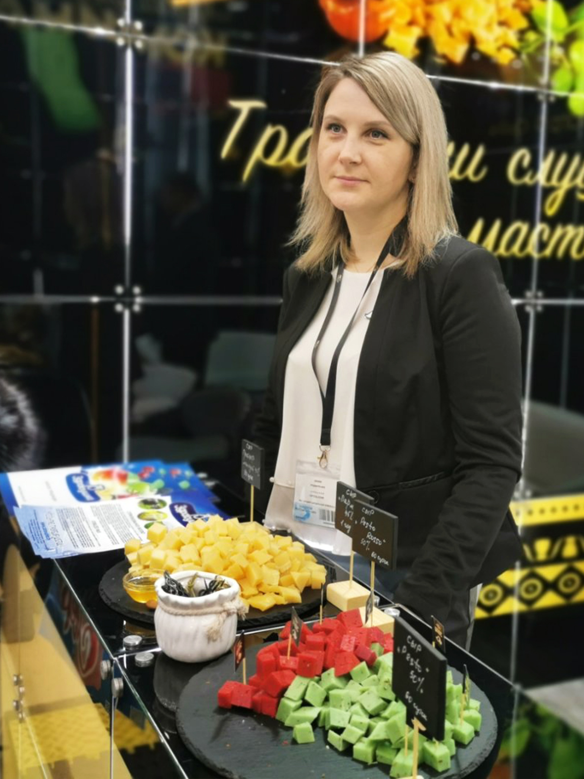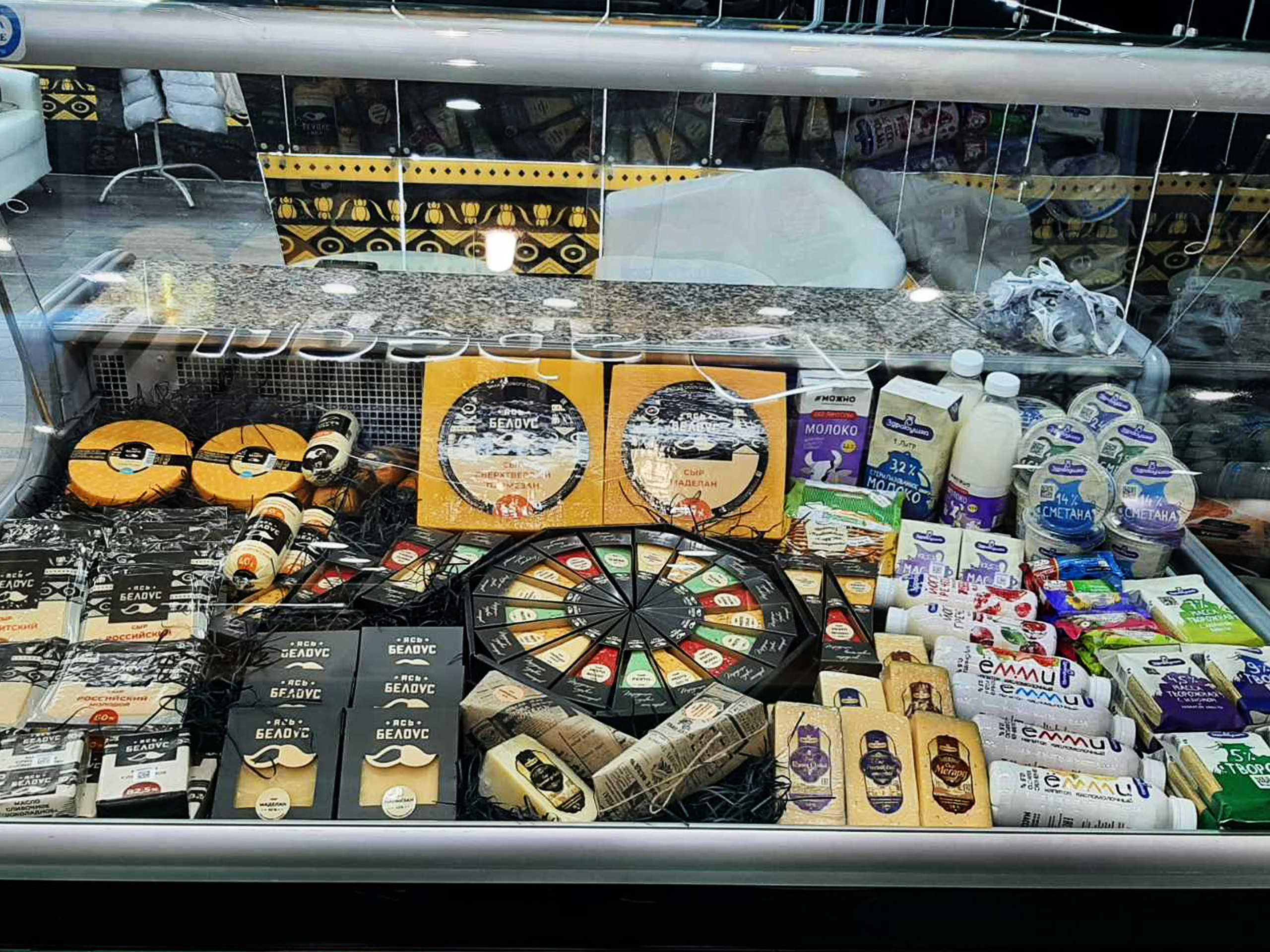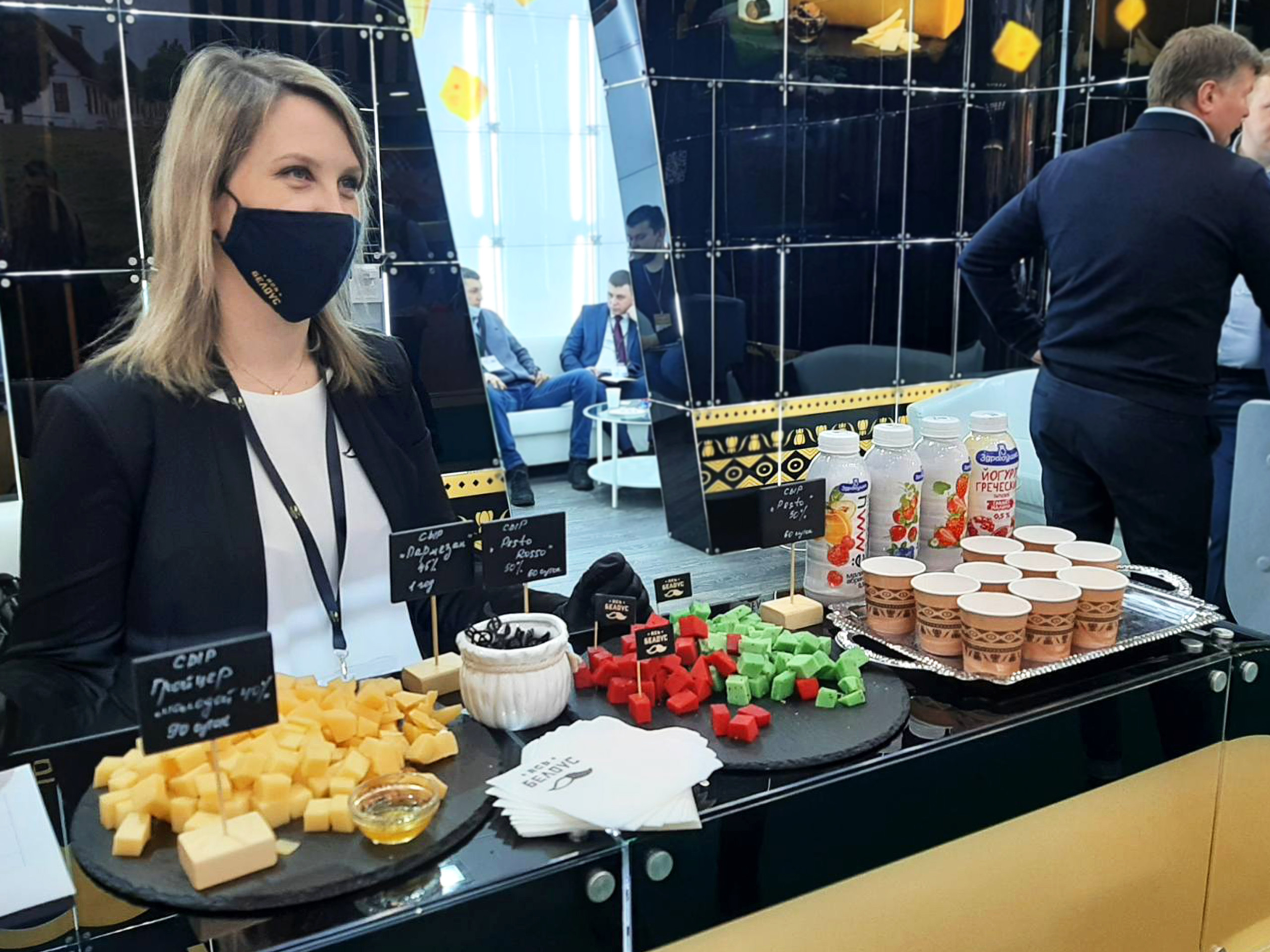 Слуцкий сыродельный комбинат представлял на выставке сыры твердые и полутвердые в ассортименте, масло сливочное, сухие молочные продукты, цельномолочную продукцию в ассортименте, глазированные сырки и т. д.