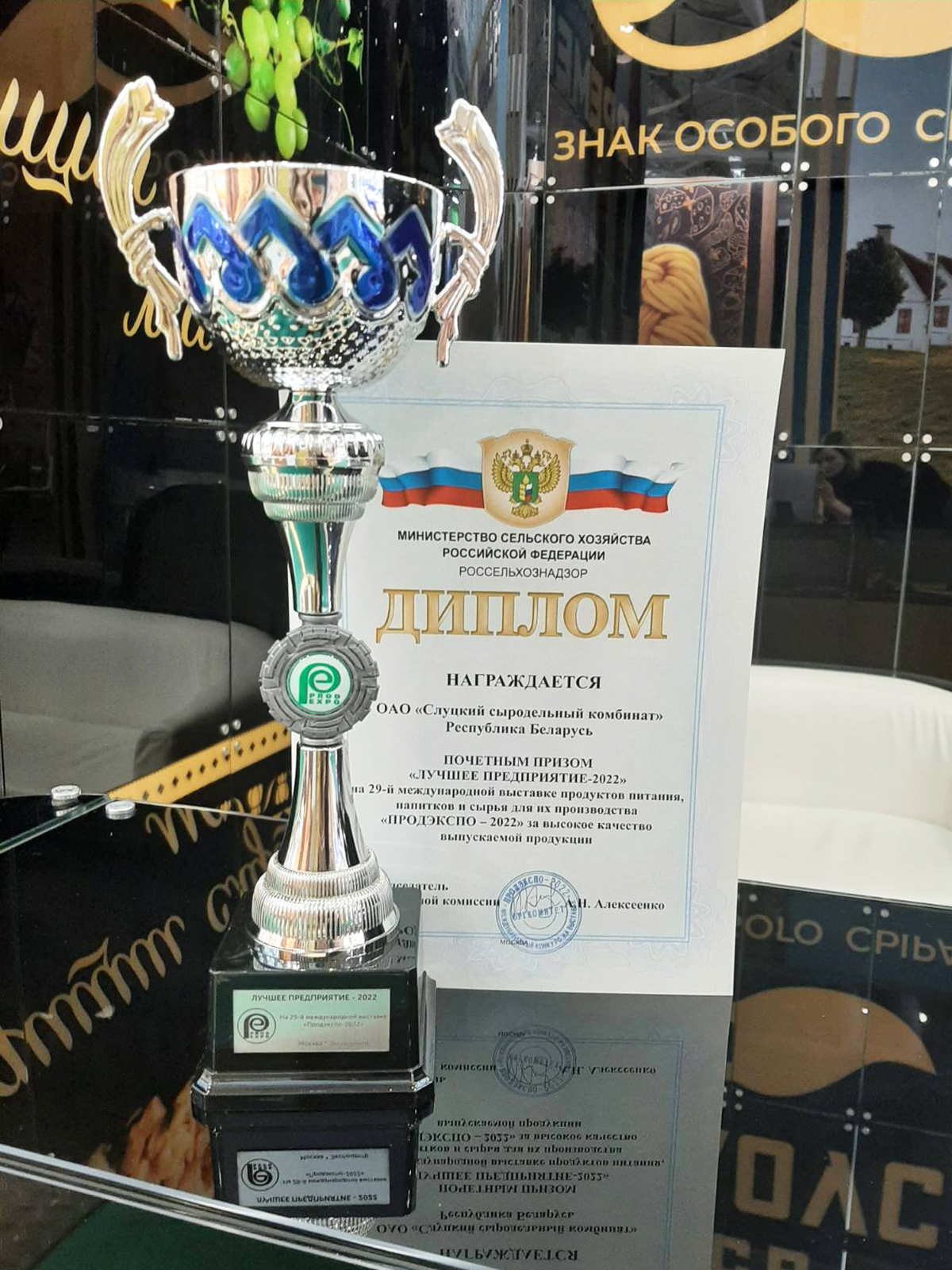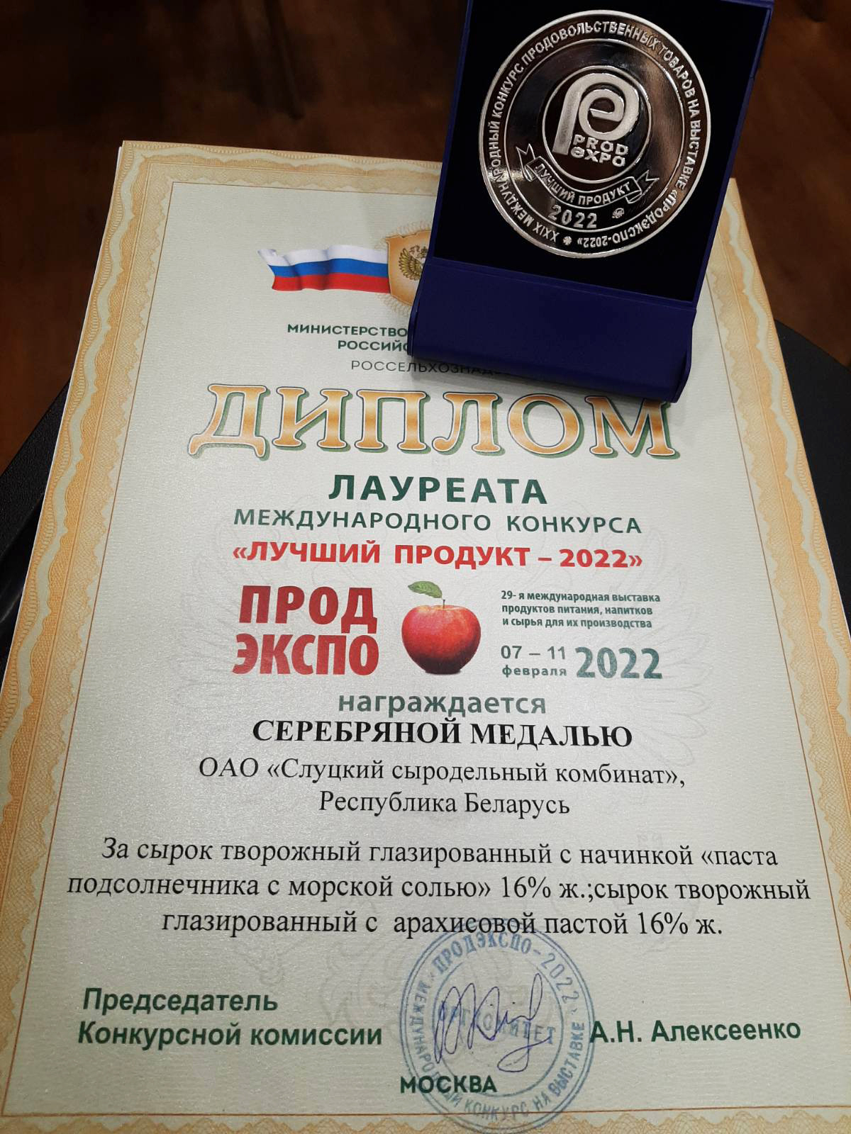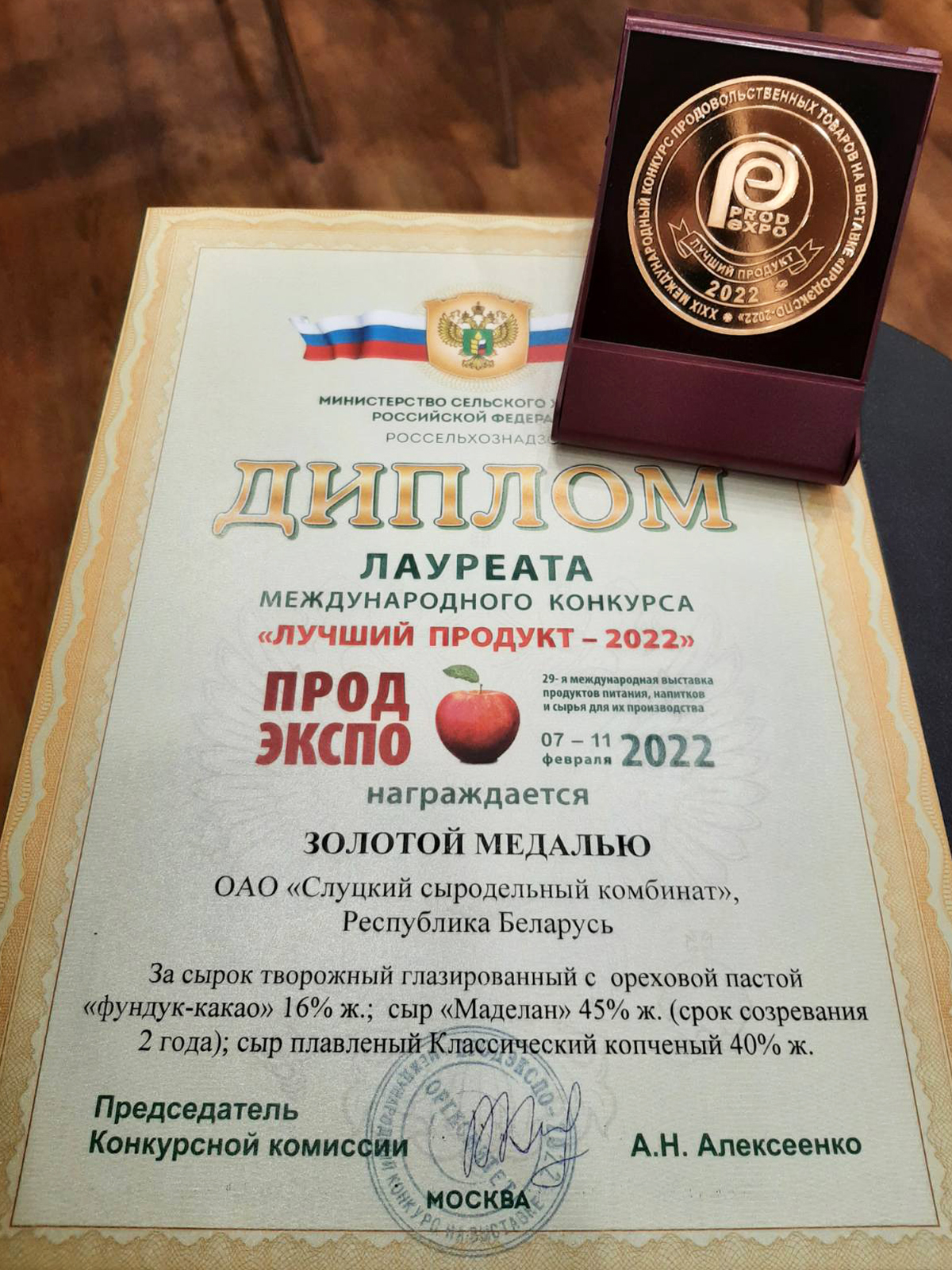 По итогам Международного конкурса «Лучший продукт – 2022» серебряной медали удостоены: сырок творожный глазированный с начинкой «паста подсолнечная с морской солью» и сырок творожный глазированный с арахисовой пастой; а сырок творожный глазированный с ореховой пастой «Фундук-какао», сыр «Маделан» со сроком созревания 2 года и сыр плавленый «Классический» копченый награждены золотой медалью. Кроме того, ОАО «Слуцкий сыродельный комбинат» отмечен почетным призом «Лучшее предприятие – 2022» за высокое качество выпускаемой продукции.