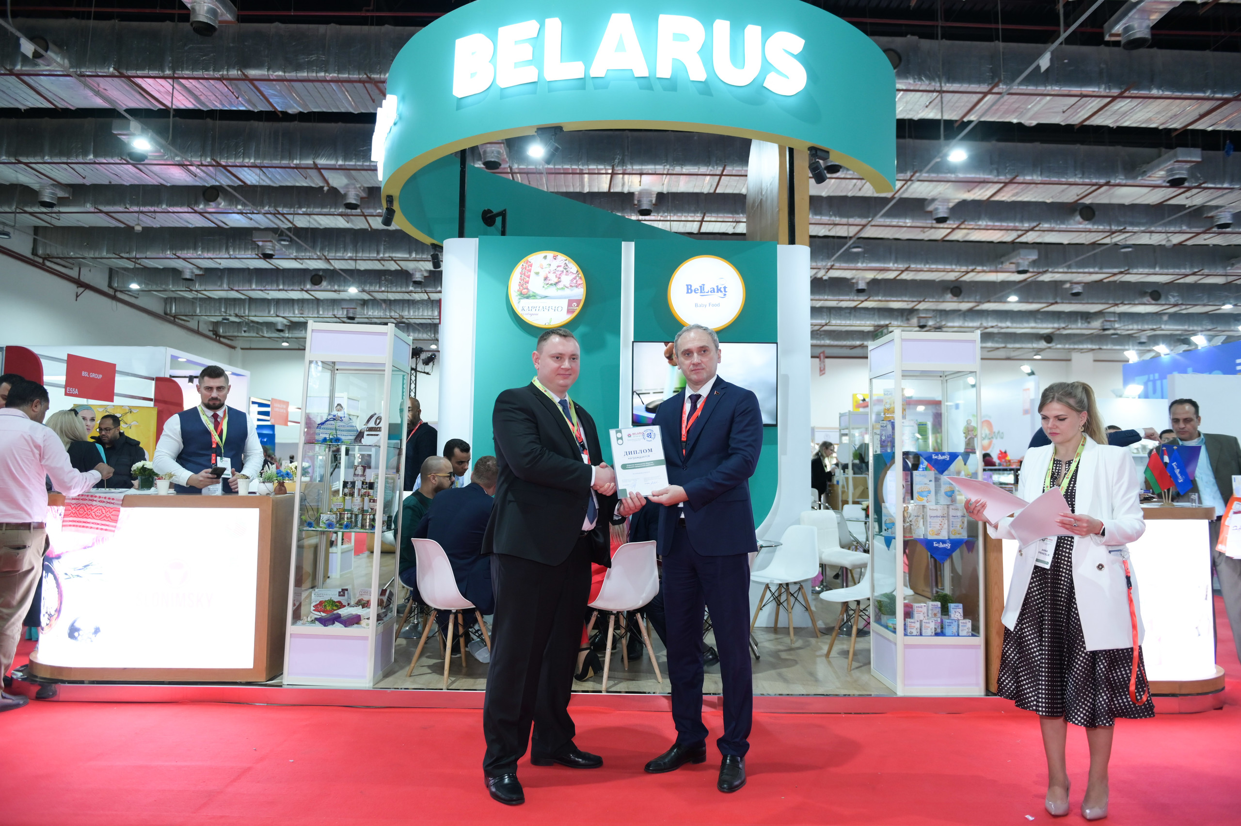 Полномочный Посол Беларуси в Египте Сергей Терентьев также посетил выставку и стенд Слуцкого сыродельного комбината.