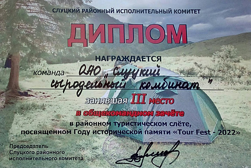 Команда нашего предприятия приняла участие во всех спортивных и творческих конкурсах. Наибольших успехов добились наши участники в волейболе, перетягивании каната, велополосе, дартсу, конкурсу «Как звезда» – по которым были заняты призовые места. В общекомандном зачете ОАО «Слуцкий сыродельный комбинат» занял 3 место.