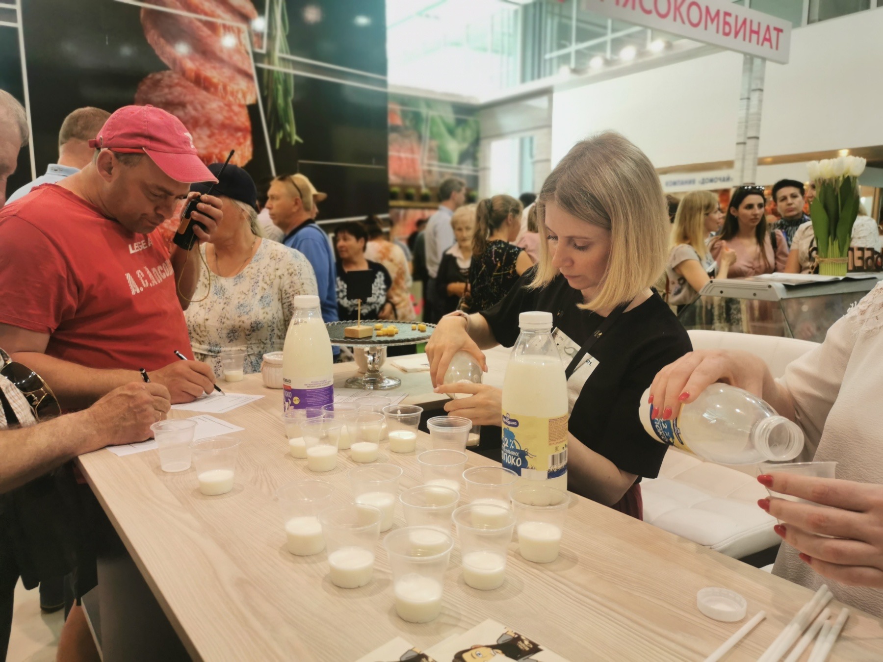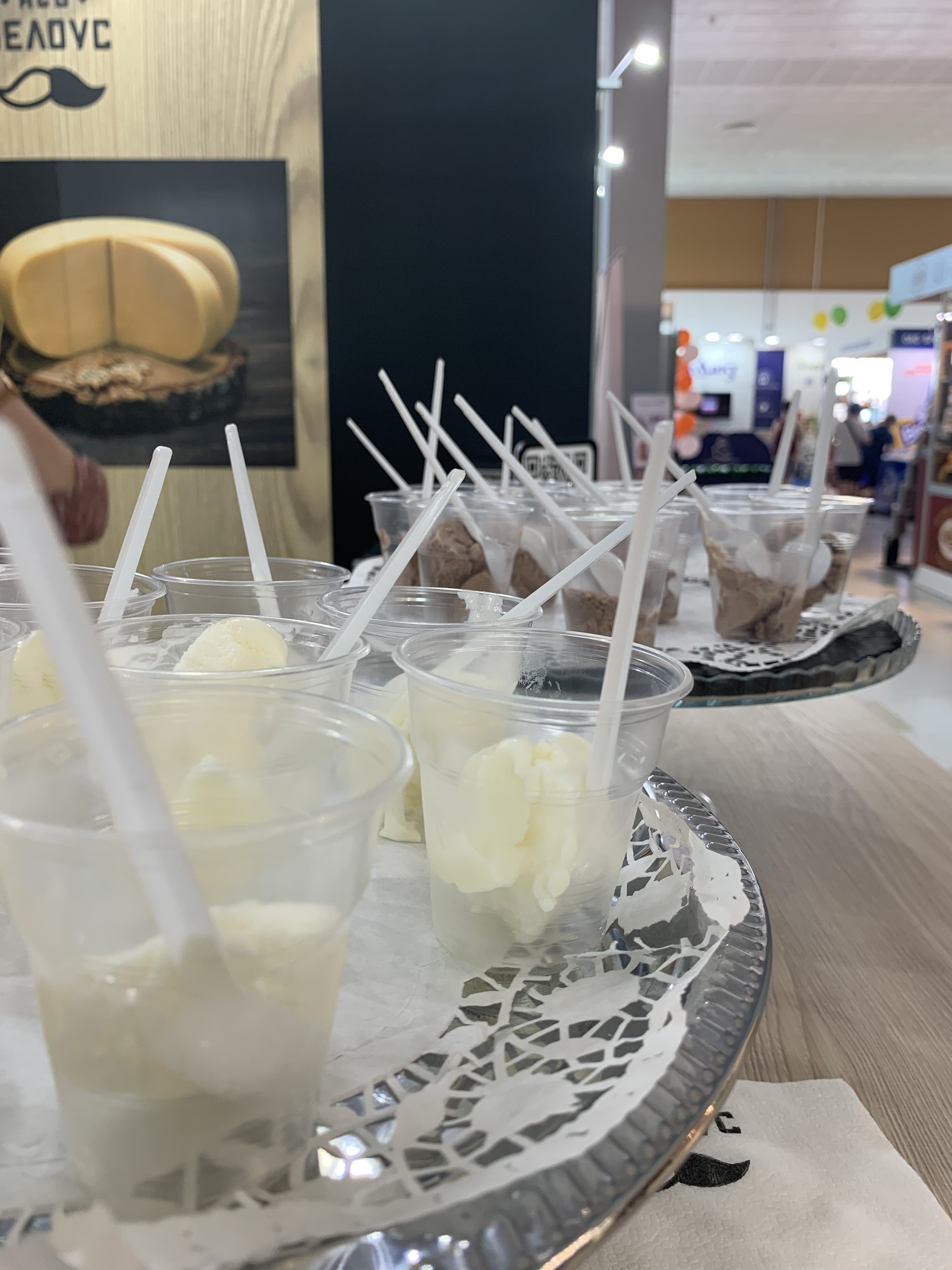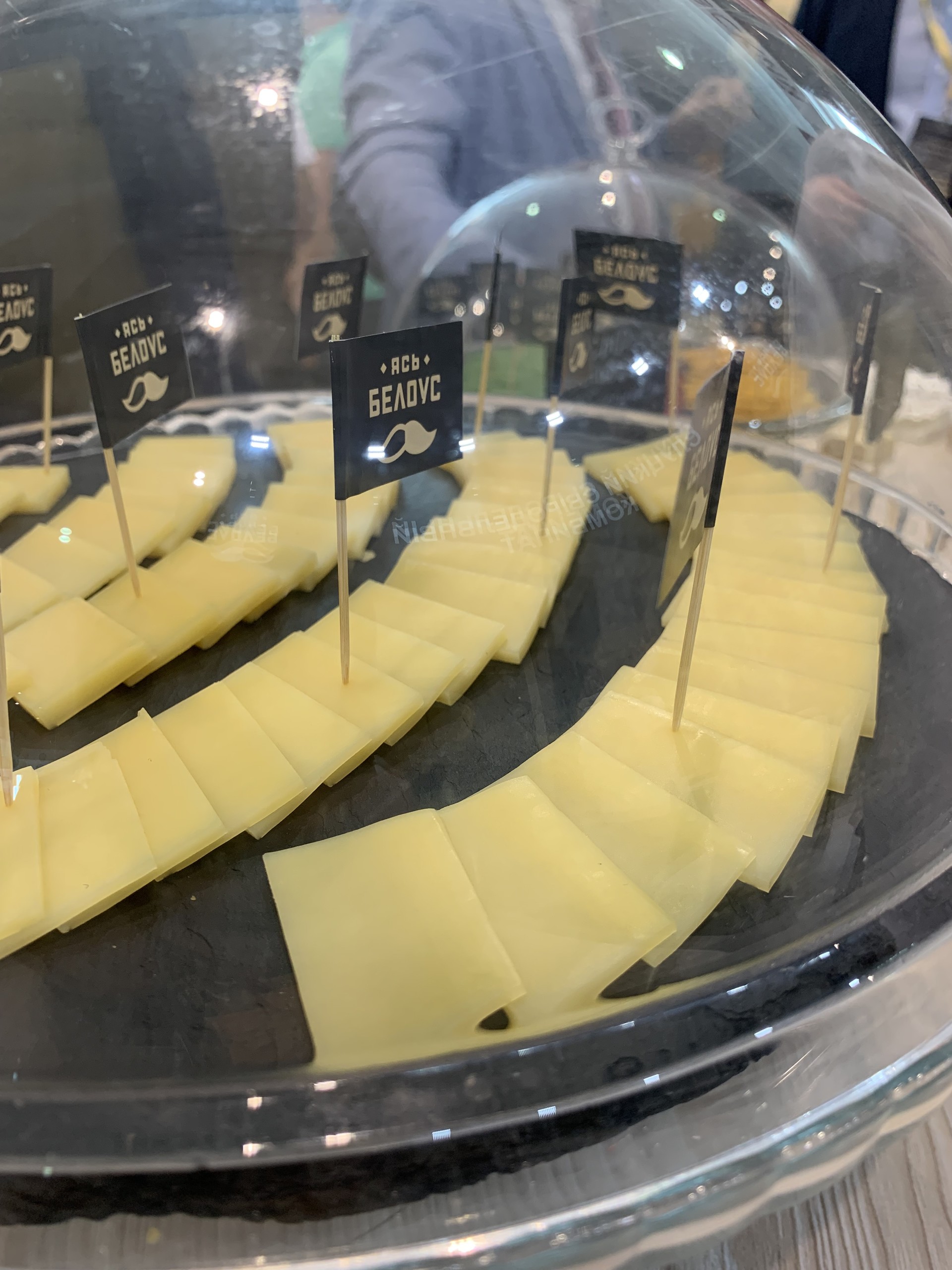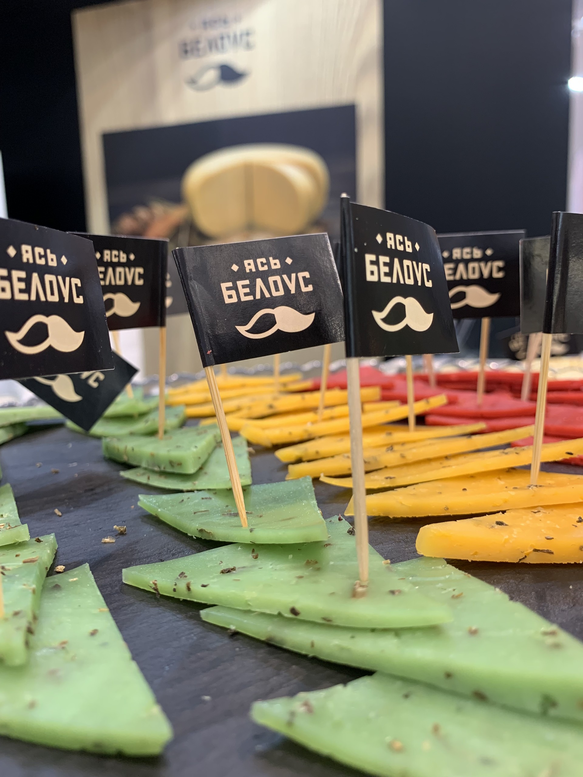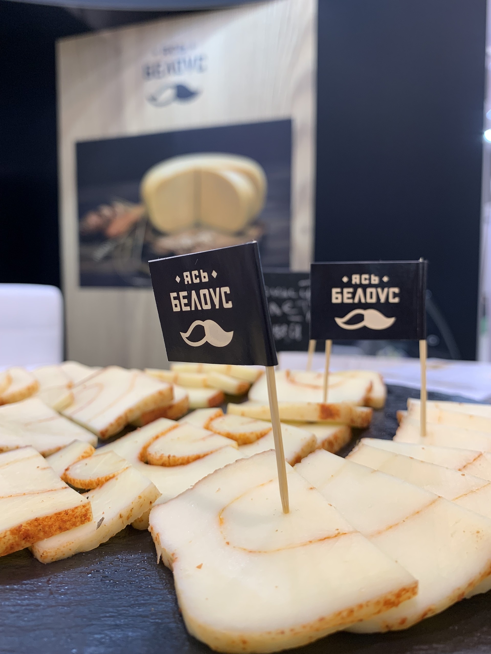 На дегустацию были представлены: сыр Pesto 50%, сыр Pesto Rosso 50%, сыр Pesto gold 50%, сыр Старый Амстердам, сыр Гройцер зрелый 50%, сыр Пармезан 45%, сырный рулет «Пряный» с паприкой, ассортимент мороженого, безлактозное молоко, глазированные сырки с наполнителем «Паста арахисовая с морской солью», «Паста подсолнечная с морской солью» и «Паста ореховая «Фундук-какао».
